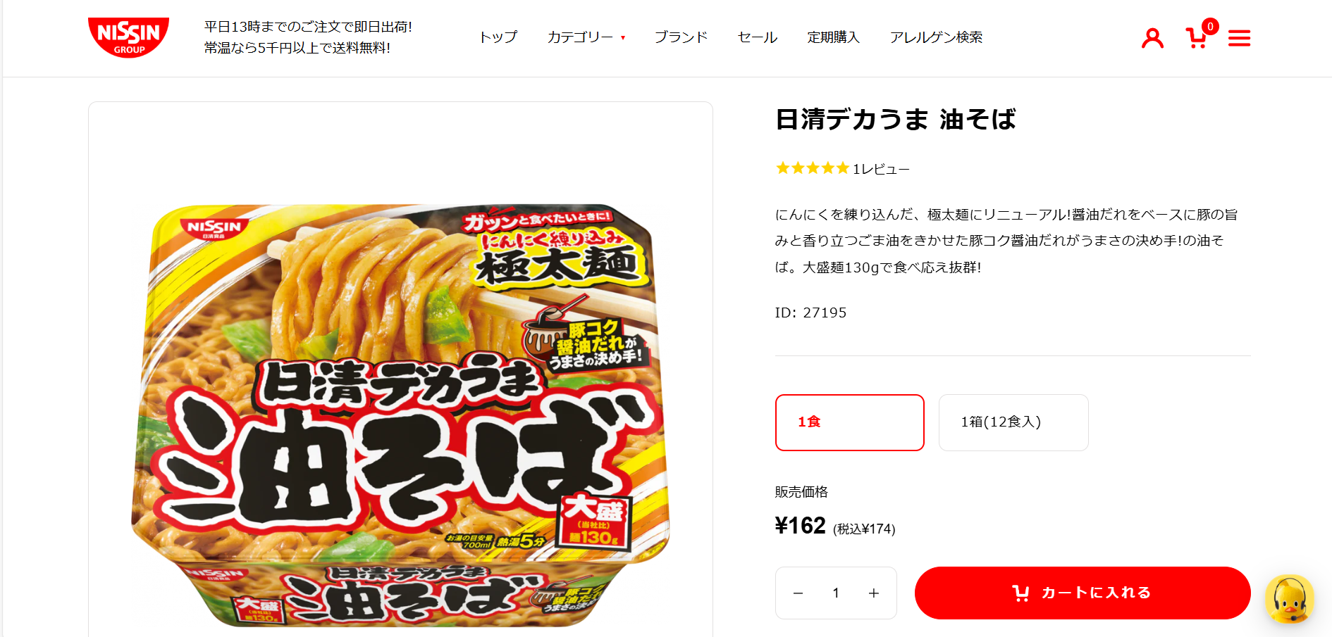 デカうま油そばは日清グループのオンラインストアで販売されています。