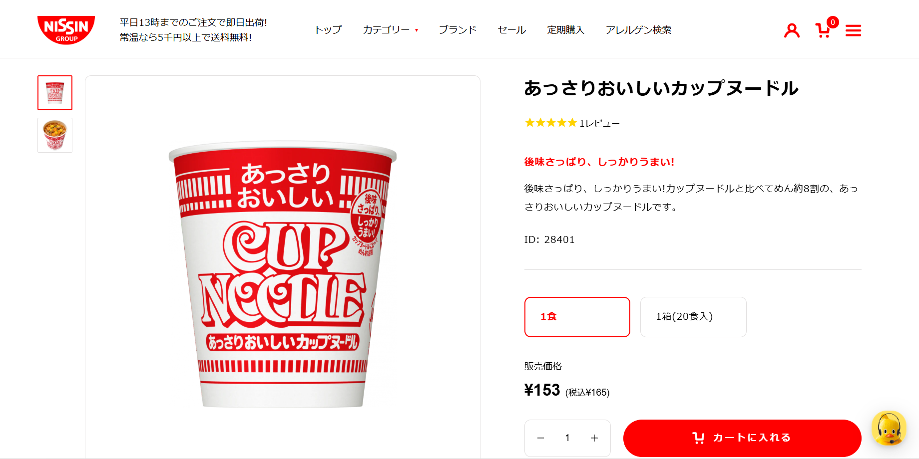 あっさりおいしいカップヌードルは日清グループのオンラインストアでも販売されています。