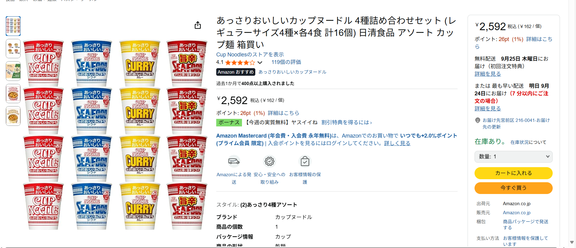 あっさりおいしいカップヌードルはAmazonでも販売されています。