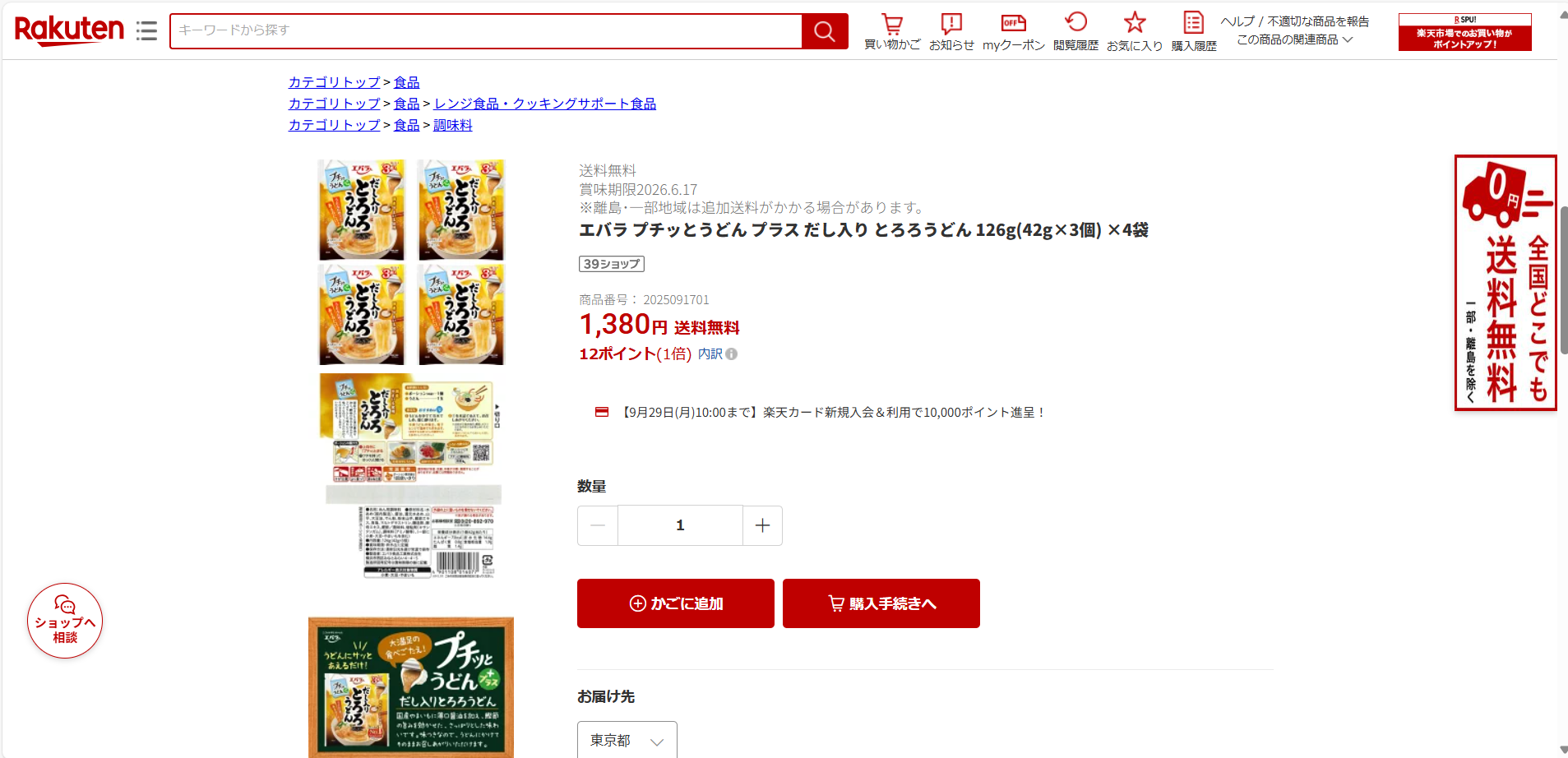 楽天市場でもプチっとうどんシリーズは販売されています。