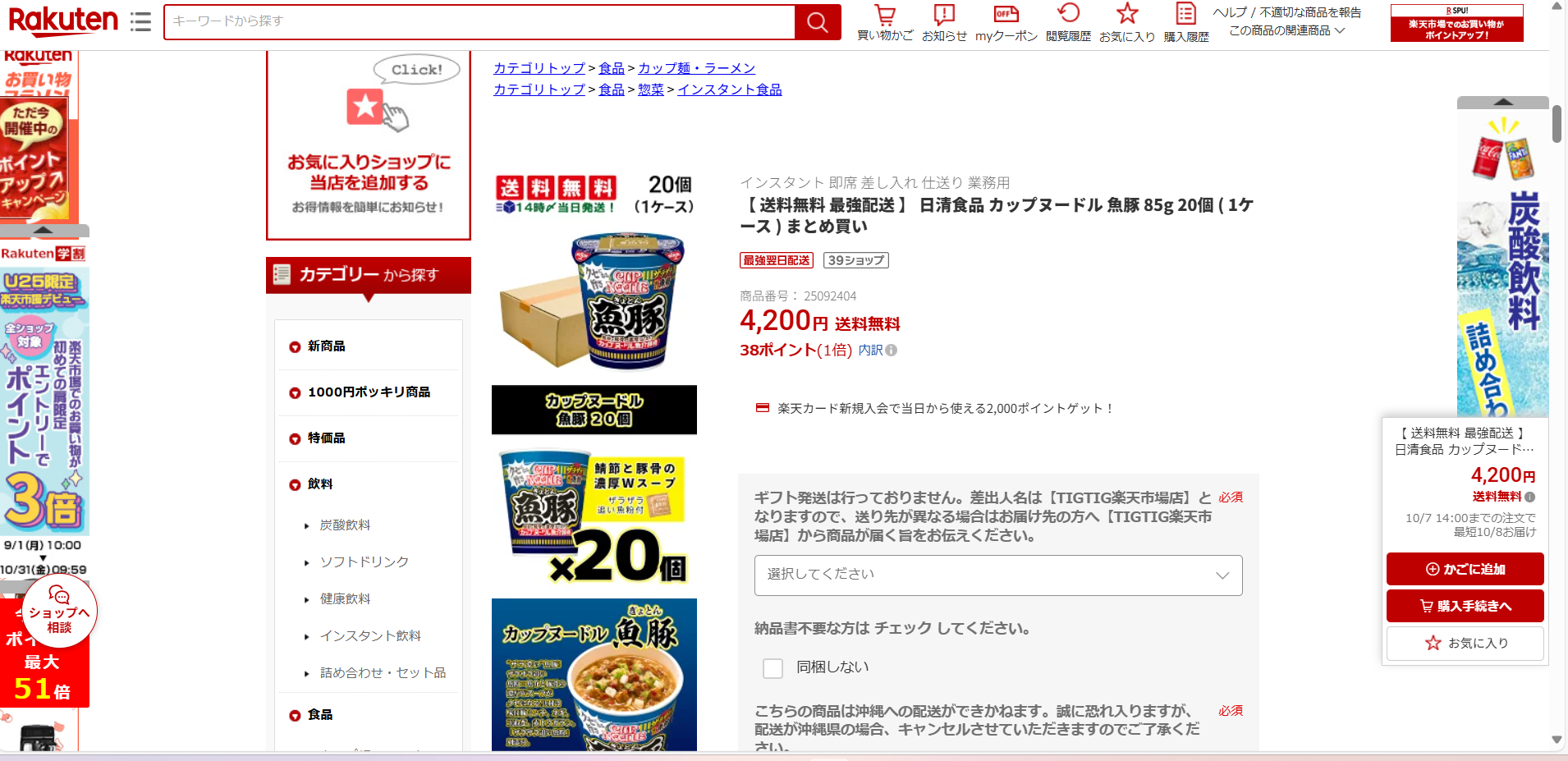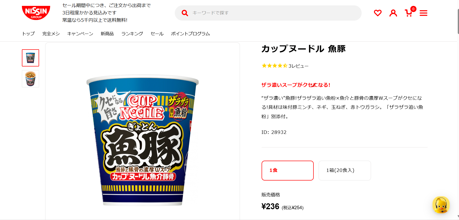 カップヌードル魚豚は日清食品のオンラインストア日清オンラインストアでも販売されています。